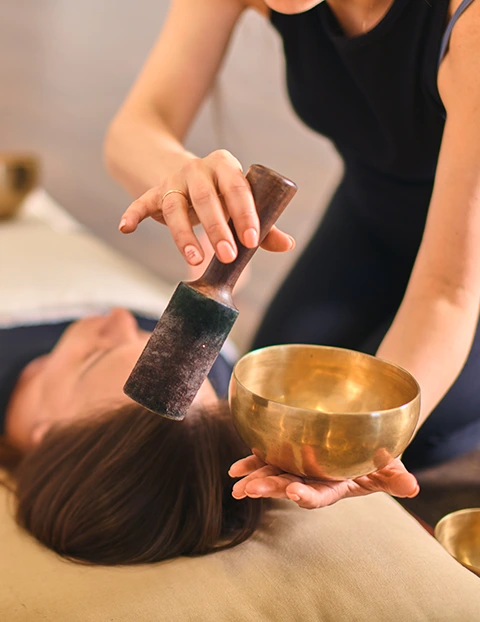 Les bols tibétains créent des fréquences qui dénouent les tensions musculaires profondes.